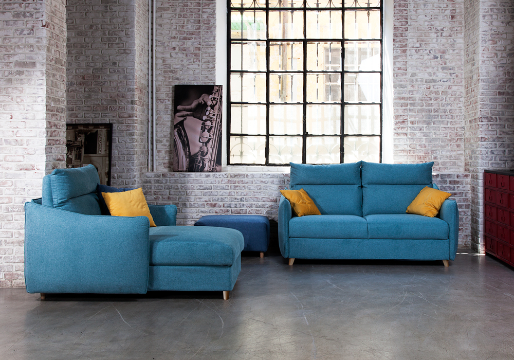 • Rivestimento divano: in tessuto completamente sfoderabile.